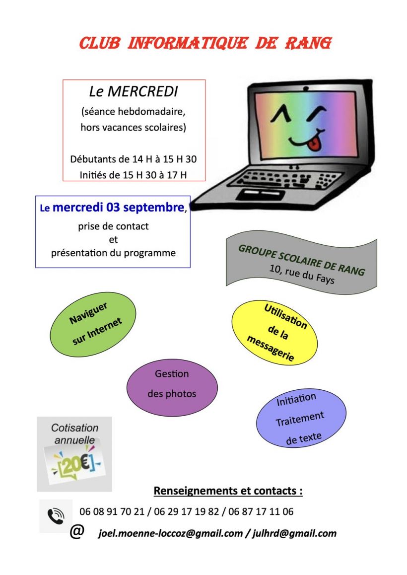 Au programme : navigation sur internet, gestion des mails, initiation au traitement de texte, gestion de photos… et bien plus encore !