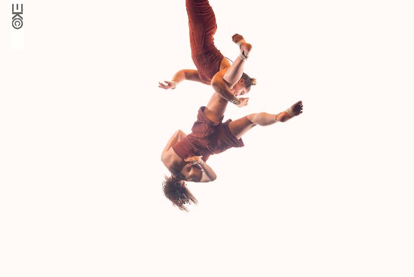 Deux corps, un trapèze, et un espace à ciel ouvert : Ce qui fleurit dans le silence explore les liens invisibles qui nous traversent et nous transforment. Angélique et Tinka donnent corps à leur récits à travers un langage physique fait de portés, de suspensions et d'écoute. Le trapèze devient le fil de leurs émotions, un partenaires discret, miroir de leurs doutes et de leur confiance.