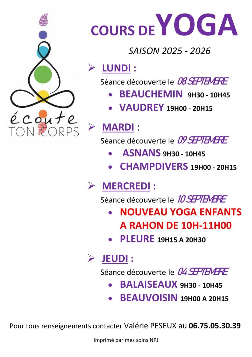 Cours de Yoga dans différentes communes des environs.