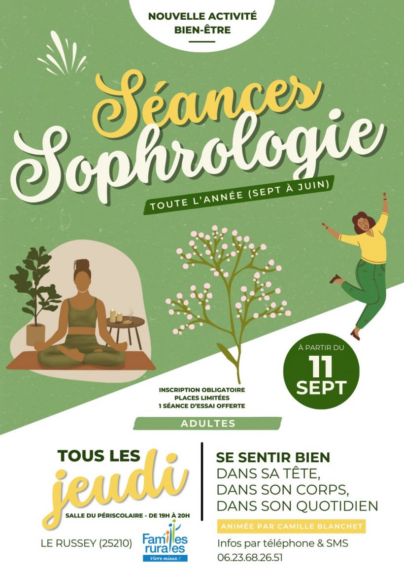 L'association Familles rurales Le Russey vous propose une activité bien-être : une série de 33 séances hebdomadaires animées par notre professeure diplômée. Les séances se déroulent en soirée tous les jeudis sauf pendant les vacances scolaires.