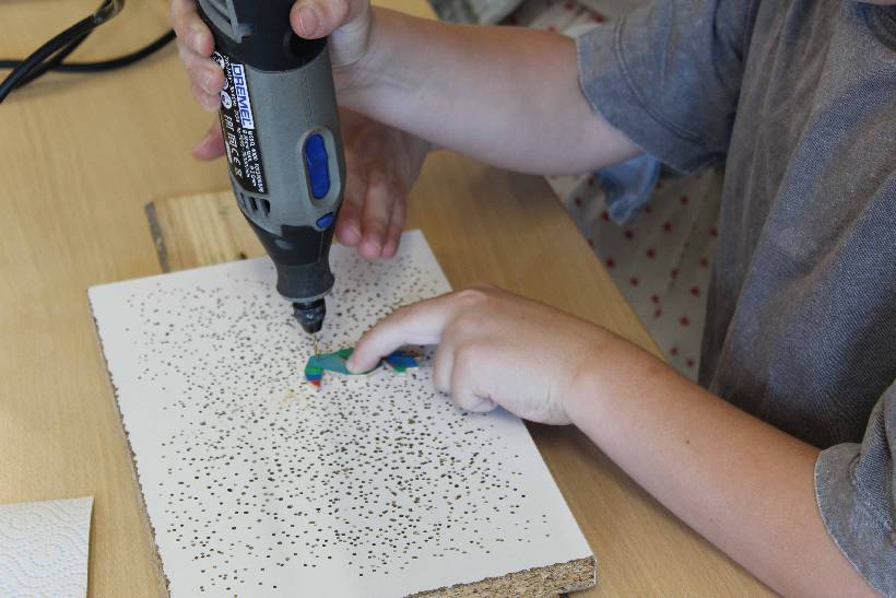 Atelier manuel pour les enfants de 7 à 12 ans : création d'une décoration en bois sur le thème d'Halloween.