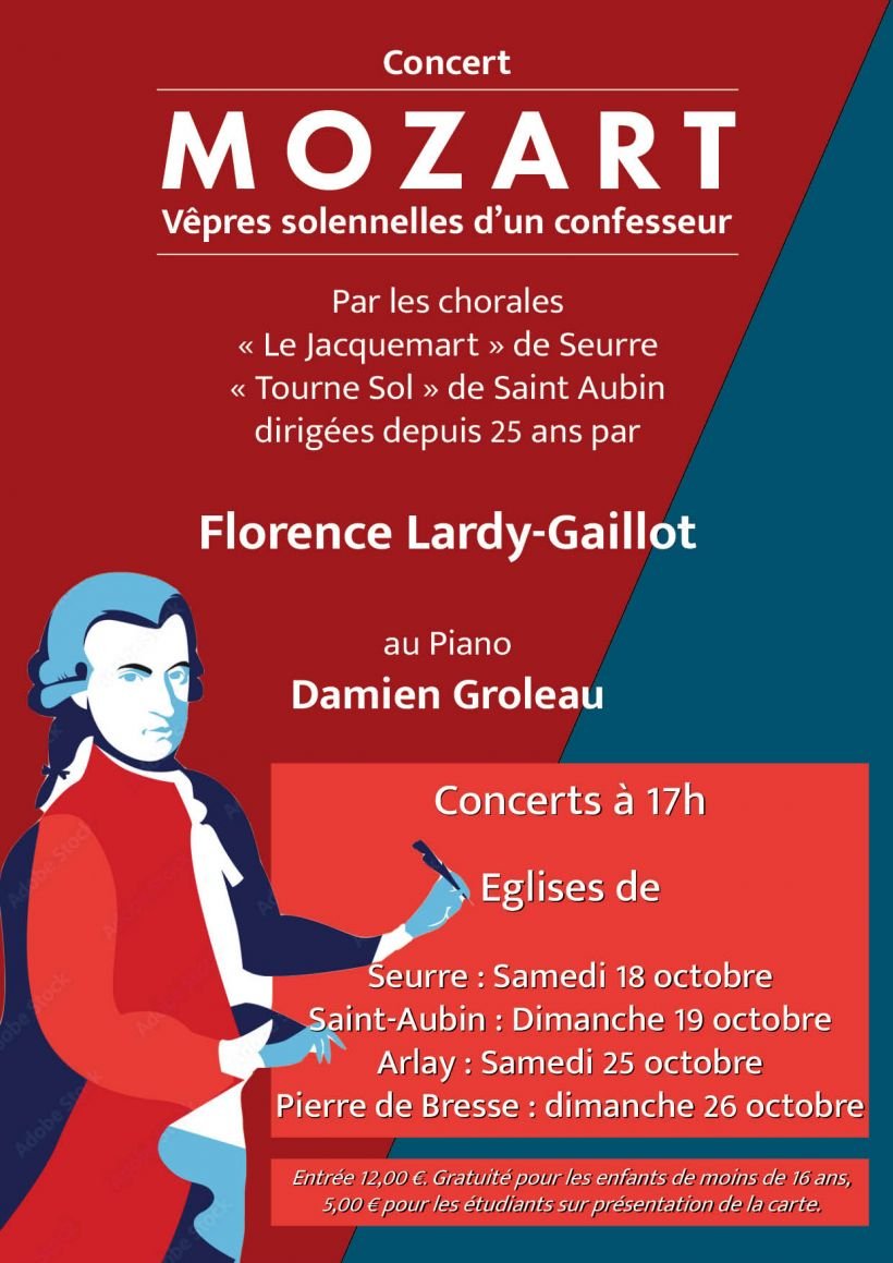 Florence Lardy-Gaillot accompagne 2 chorales depuis 25 ans. Concert autour des Vêpres solennelles d'un confesseur de Mozart, par les chorales Tourne Sol de St-Aubin et le Jacquemart de Seurre, soit environ 60 choristes.
