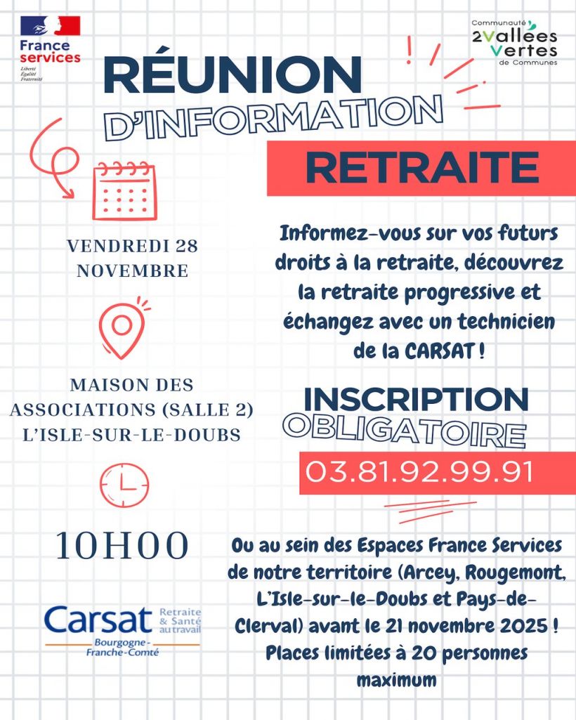 Thèmes abordés : vos futurs droits à la retraite, la retraite progressive, échanges avec un technicien de la CARSAT.