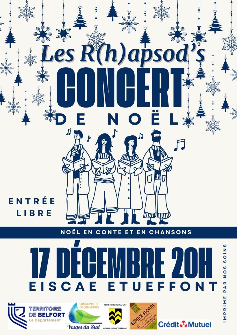 La chorale d'Etueffont Les R(h)apsod's, forte de 40 choristes, dirigée par Justine Lecat-Poumerol et accompagnée au piano par Laurent Coeurdacier, nous plongera dans la magie de Noël en conte et en chansons.