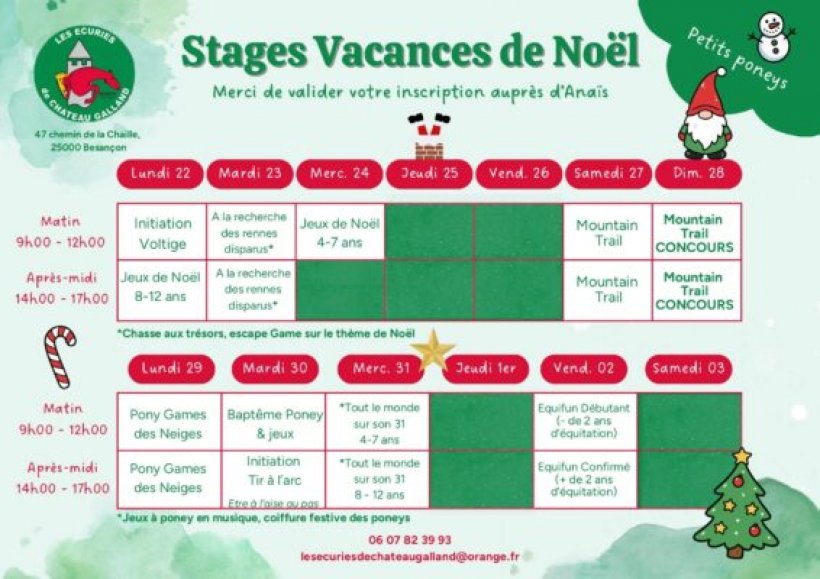Comme à chaque vacances, venez vivre un moment magique à poney ou à cheval aux écuries du Château Galland, avec des stages variés mêlant de nombreux thèmes et disciplines pour tous les niveaux !