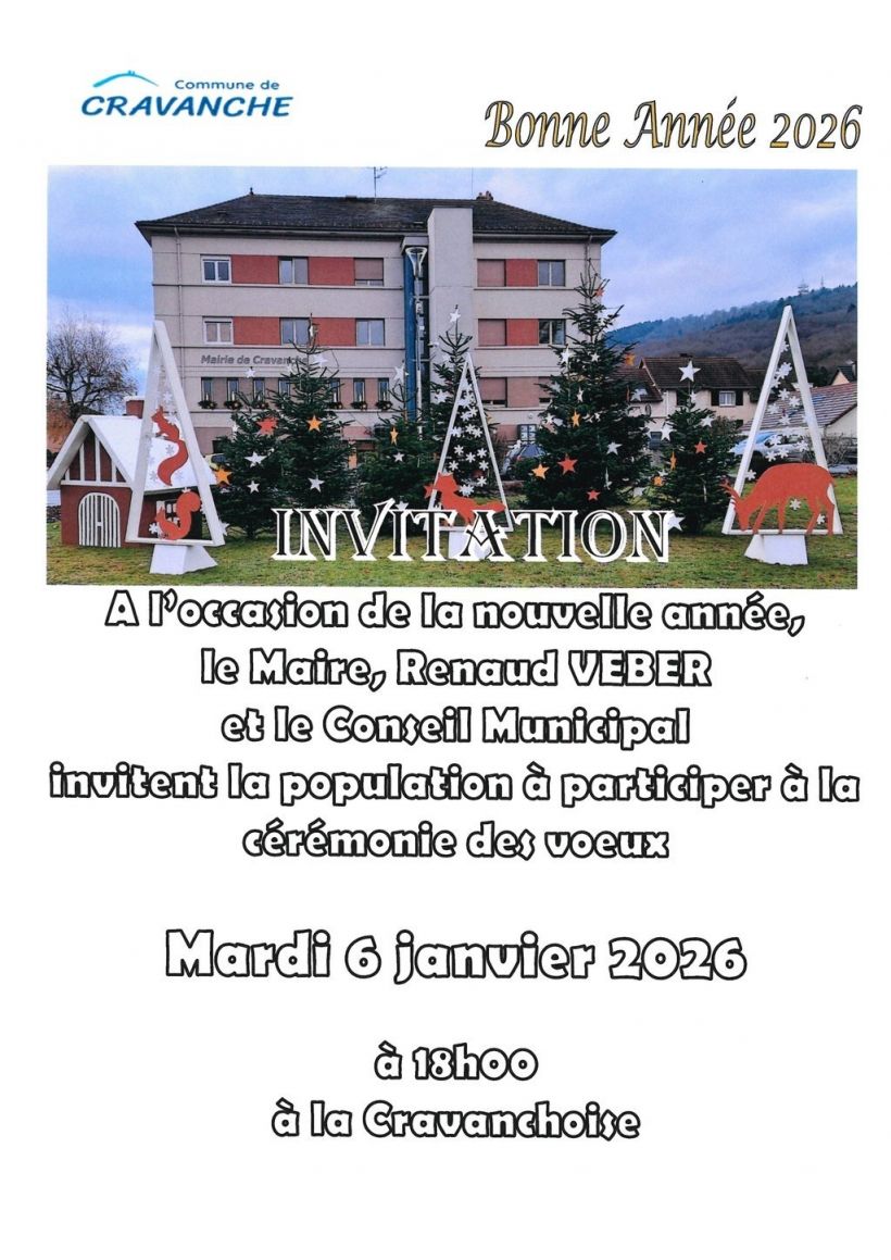 Le Maire et le Conseil Municipal invitent la population à participer à la cérémonie des Voeux qui aura lieu à 18h.