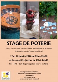Initiation au modelage, travail à la plaque, apprentissage des techniques de décoration avec de l'engobe et de l'émail.
