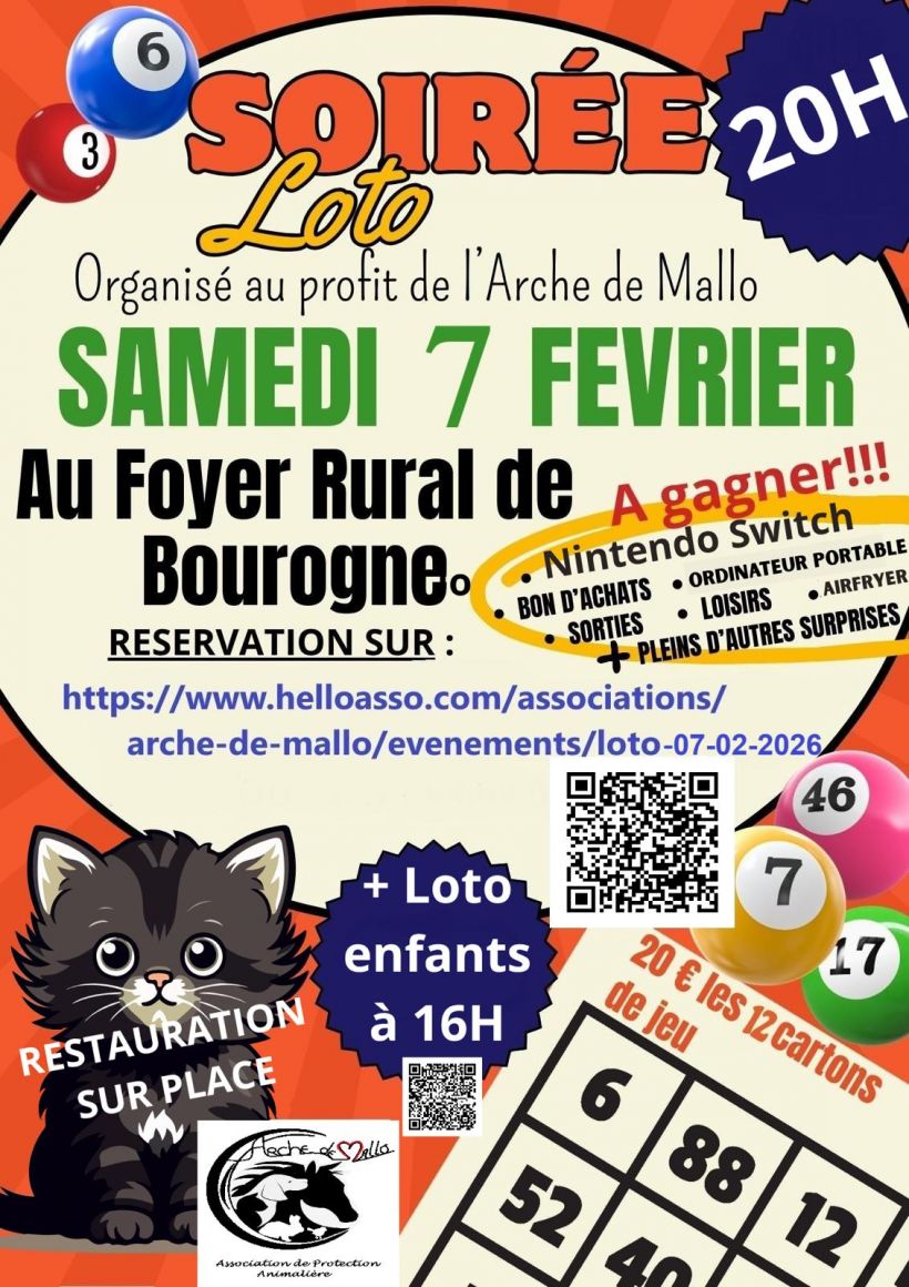 Nous vous attendons nombreux à notre loto, vous passerez un bon moment tout en faisant une bonne action pour les chats errants et abandonnés !