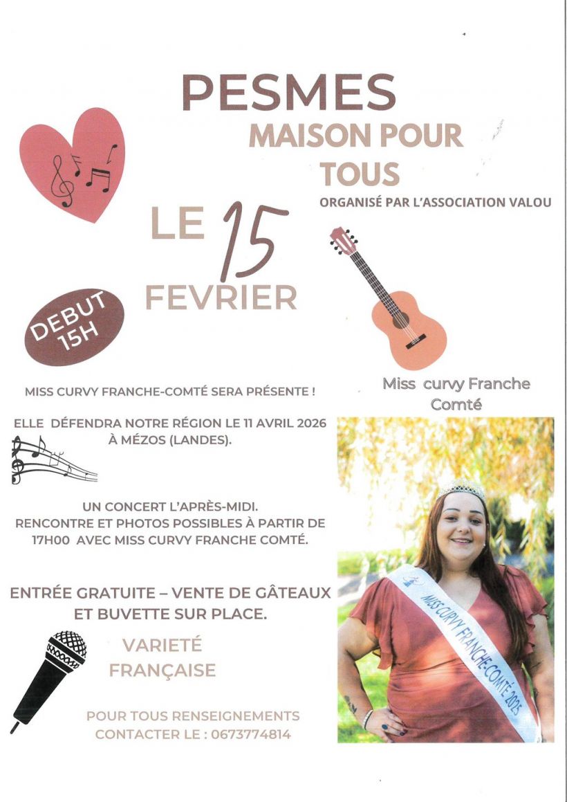 Le concert sera suivi d'un échange et d'une séance photos avec Lou TATON, Miss CURVY Franche-Comté 2025 qui concourra à l'élection nationale du 11 avril 2026.