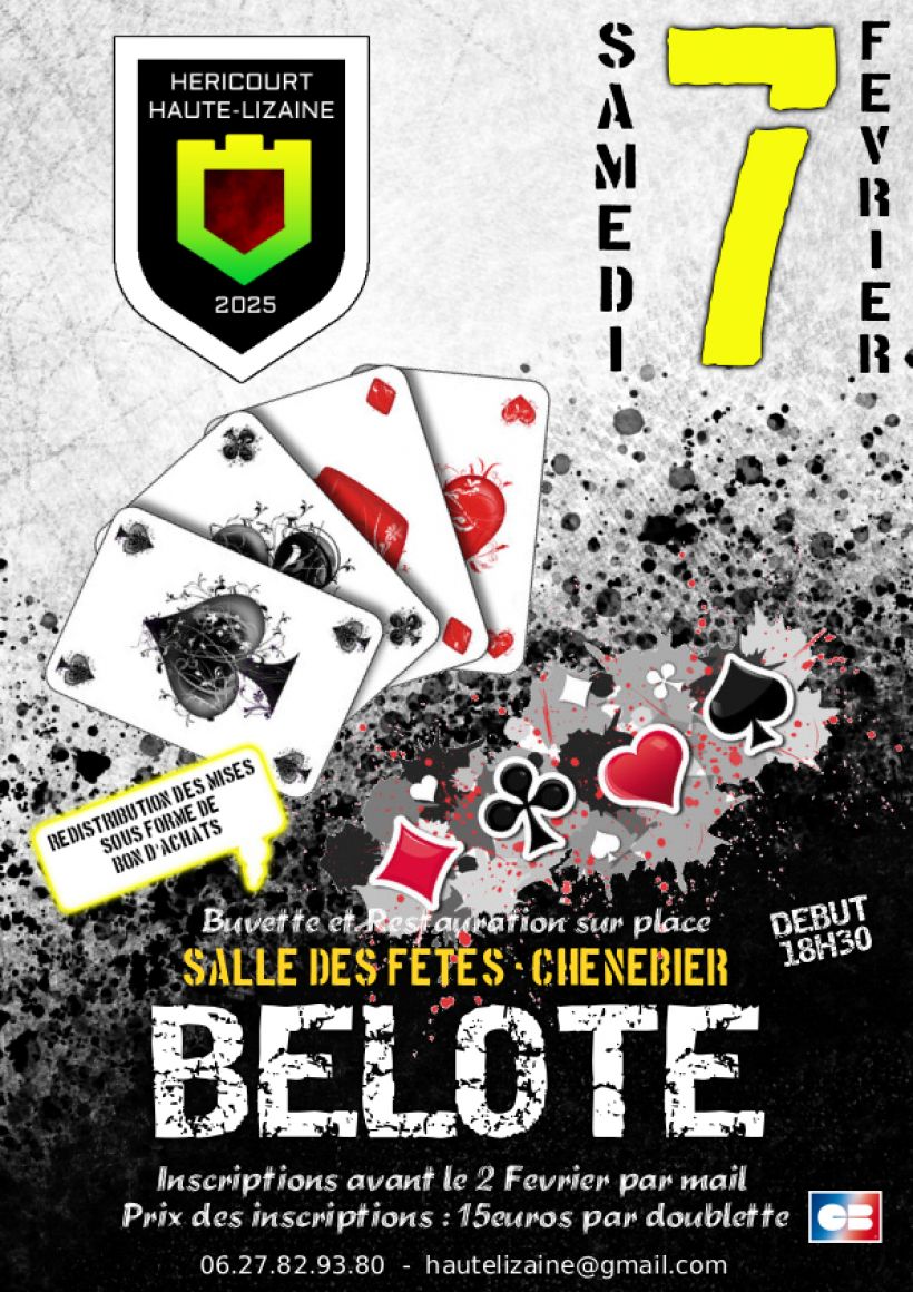 Le club de foot Héricourt Haute Lizaine organise une soirée Belote.