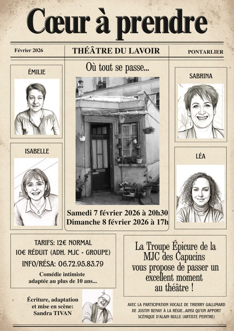 Pour terminer MARS BLEU 2026 en beauté. Comédie intimiste qui vous fait voyager dans la loge d'une concierge, oû se déroulent des vies ! Rire et réfléchir... La troupe Epicure vous attend nombreux, car le bénéfice ira intégralment à l'association.