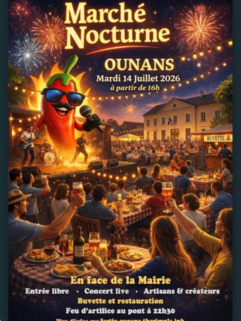 Le Marché Nocturne d'Ounans vous donne rendez-vous pour une soirée conviviale, festive et familiale réunissant producteurs et artisans locaux, restauration sur place, buvette et animation musicale.