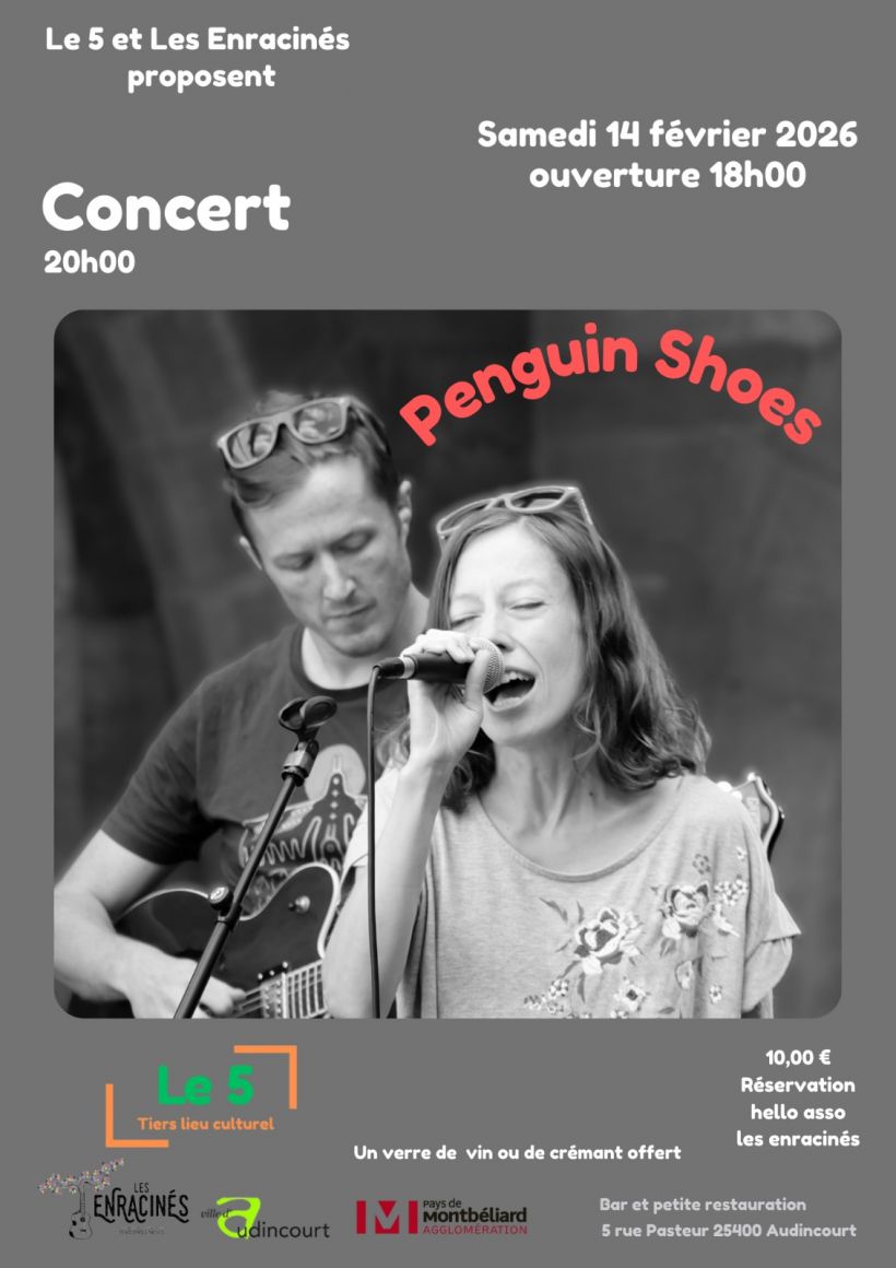 Les Penguin Shoes vous donnent rendez-vous pour une Saint-Valentin ou pas ! Venez taper du pied sur leurs rythmes entraînants : ici, on célèbre l'amour... de la bonne musique !