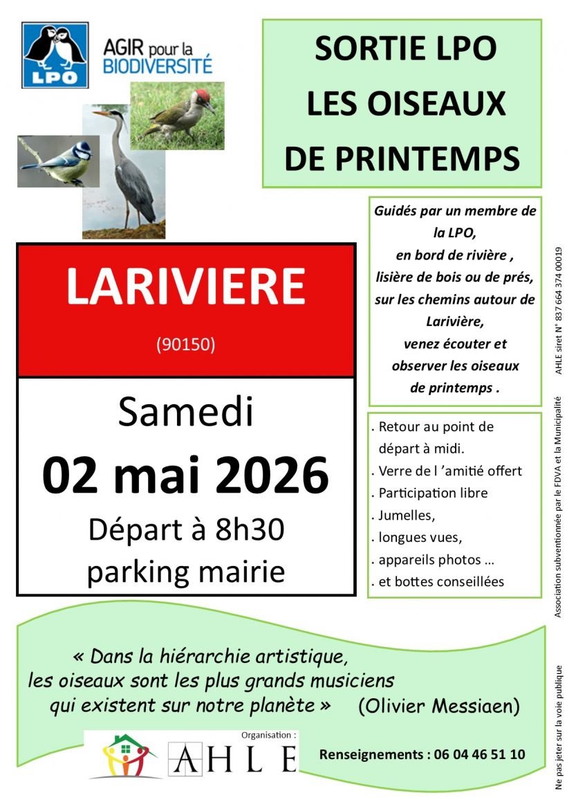 L'amicale des habitants de Larivière et environs AHLE vous invite à participer à une sortie LPO.