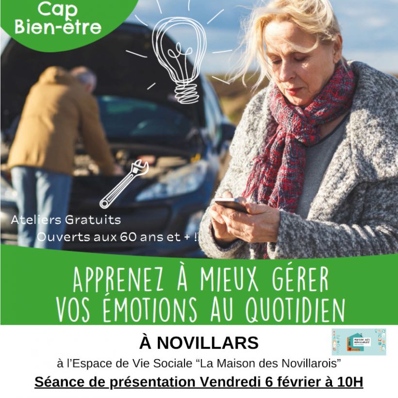 En partenariat avec la Maison des Novillarois, l'ASEPT BFC organise une session de 4 ateliers CAP BIEN ETRE les vendredis de 9h30 à 12h : 27/02, 06/03, 13/03, 20/03 à destination des seniors de plus de 60 ans.
