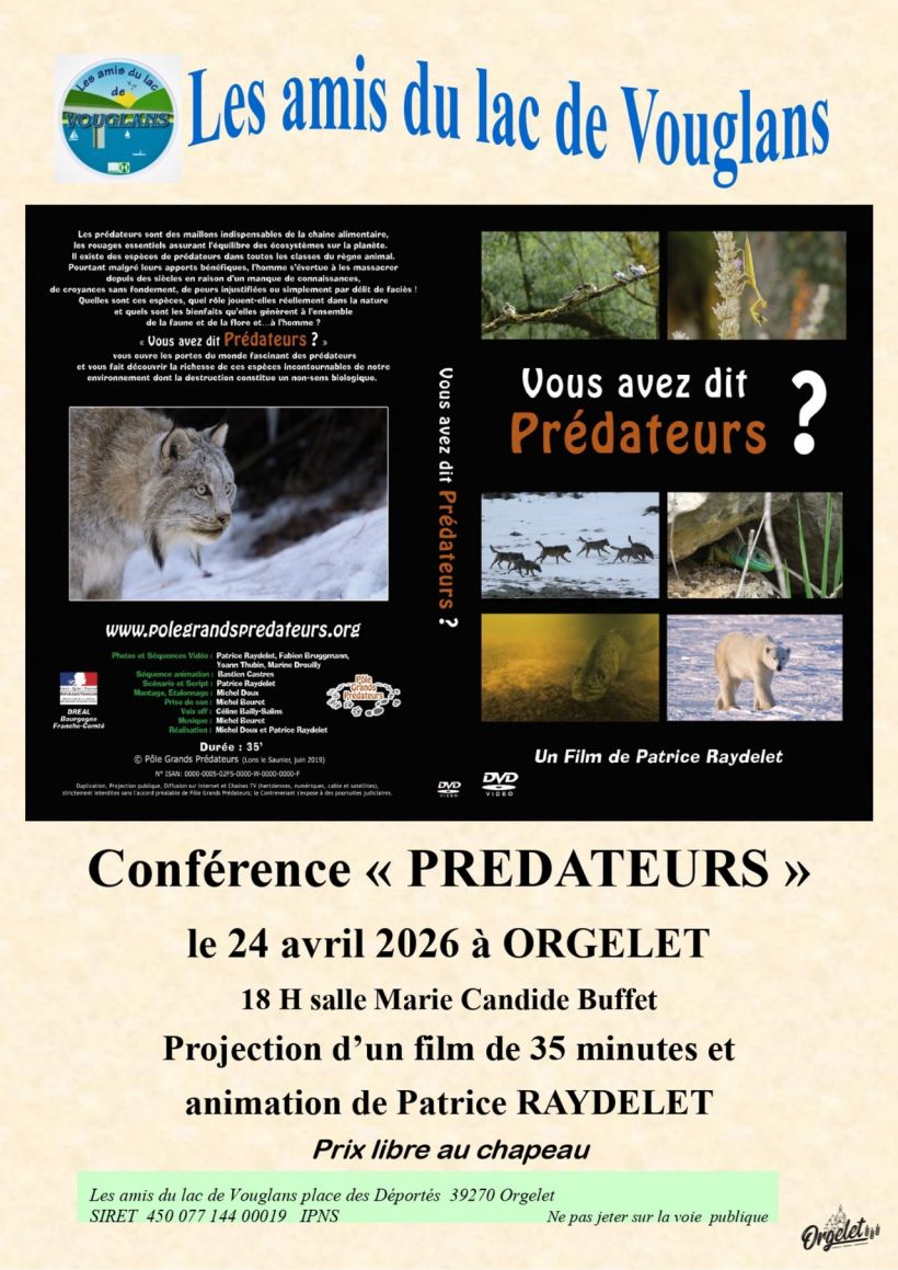 Venez découvrir à travers un film de 35 min, suivi d'échanges avec le réalisateur Patrice Raydelet, le monde fascinant des prédateurs et la richesse de ces espèces incontournables de notre environnement : Qui sont-ils ? Quel rôle jouent-ils réellement dans la nature et quels sont les bienfaits qu'ils génèrent à l'ensemble de la faune et de la flore... et à l'homme ?
