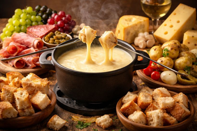 Soirée fondue conviviale avec charcuterie et accompagnements.