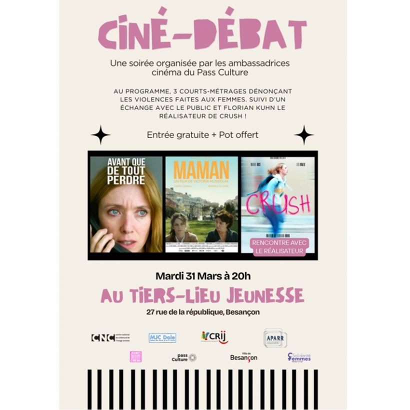 Projection suivie d'un échange avec le réalisateur de Crush et l'Association Solidarité Femmes Besançon.
