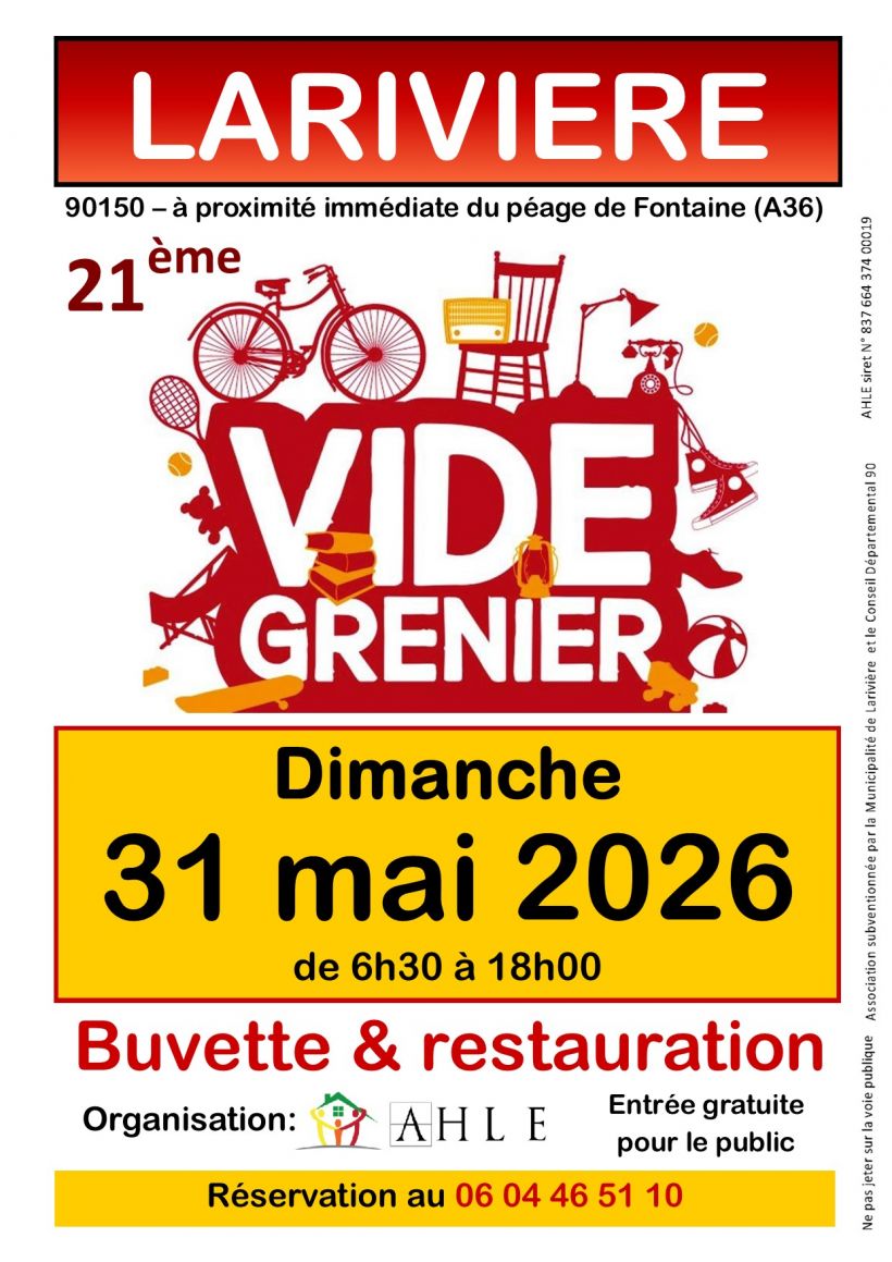 L'association villageoise AHLE organise la 21ème édition de son traditionnel vide-greniers, de 6h30 à 18h, au coeur du village de Larivière.