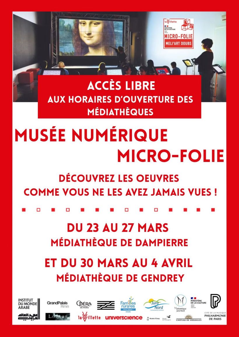 Venez et prenez le temps de découvrir le musée numérique Micro-folie dans les médiathèques de Dampierre puis de Gendrey.