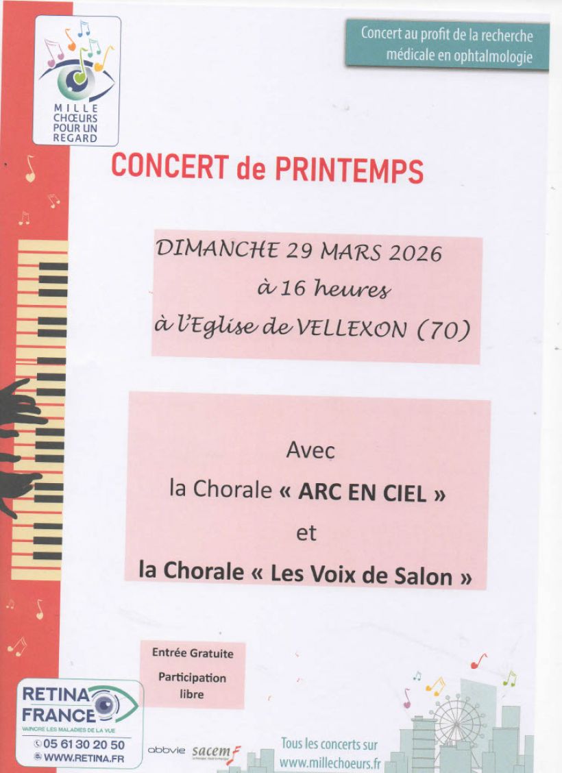 La chorale Les Voix du Salon proposera un concert au bénéfice de Retina France dans le cadre de l'opération nationale ''1000 choeurs pour un regard'' à laquelle elle participe régulièrement de puis de nombreuses années.