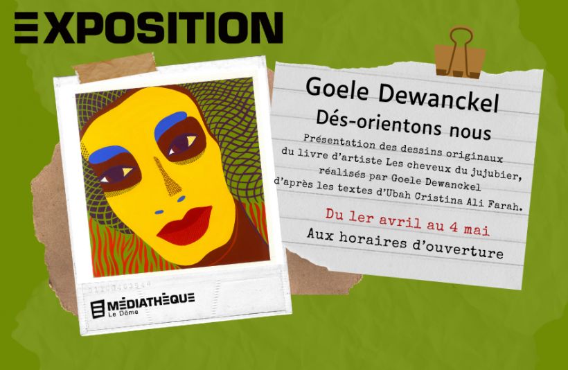 Présentation des dessins originaux issus du livre d'artiste Les cheveux du jujubier, réalisés par Goele Dewanckel, d'après les textes de Ubah Cristina Ali Farah, édité sous forme d'un leporello.