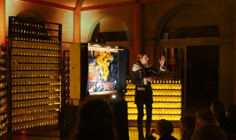 Un spectacle en kamishibaï géant et en musique : Faïsto, petite fille rêveuse, vit avec sa grand-mère dans une maisonnette d'un lointain pays du nord. Enfant, elle confie ses pensées au feu du foyer, Ajiyuata, son mystérieux ami. Mais en grandissant, elle oublie peu à peu ce lien magique. Blessé, le feu cesse alors de protéger la maison. Des démons surgissent et sa grand-mère tombe gravement malade. Pour la sauver, Faïsto devra entreprendre un voyage initiatique à travers les mondes et retrouver le khomus, une guimbarde magique capable de rétablir l'équilibre.