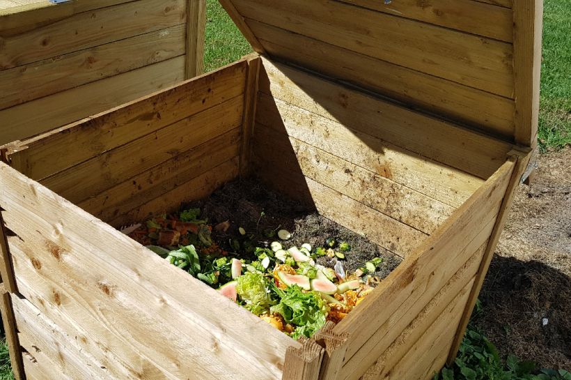 Stand de retrait de composteur en bois, livré avec seau à compost et guide sur le compostage.