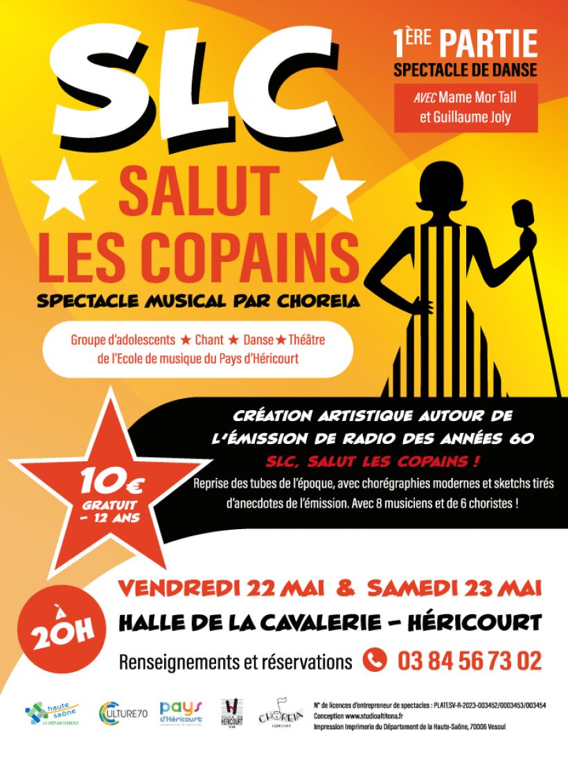 Création artistique autour de l’émission de radio des années 60 « SLC Salut les Copains ». Reprise des tubes de cette époque, avec chorégraphies modernes et quelques sketchs tirés d’anecdotes de l’émission.