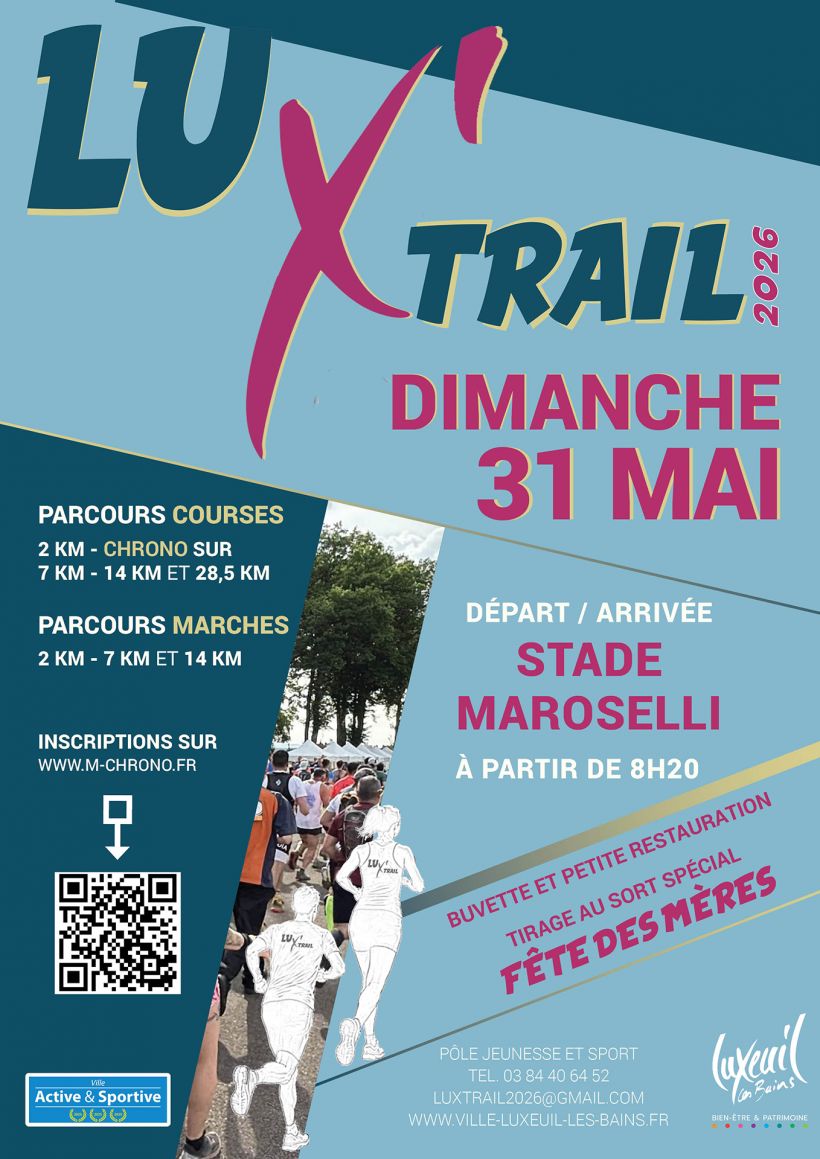 Participez au Lux'Trail au départ du Stade Maroselli à partir de 8h20. Parcours course : 2 km / chrono sur 7 km / 14km et 28,5 km. Parcours marche : 2 km / 7km et 14 km.