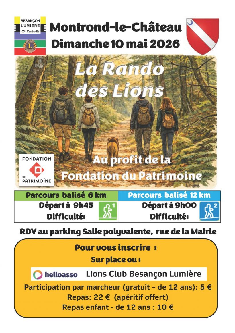 Organisé par le Lions Club Besançon Lumière au profit de la Fondation du Patrimoine pour poursuivre la rénovation du château !