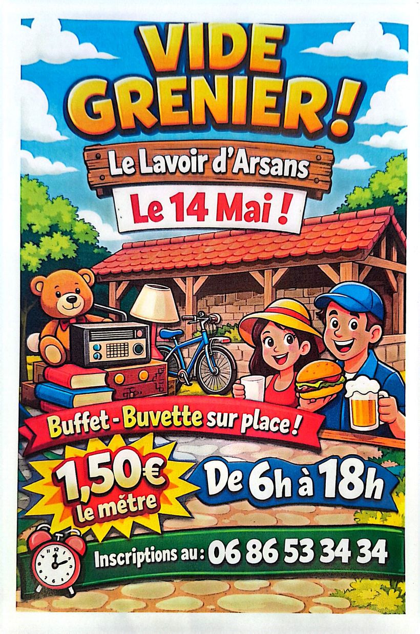 L'association Le lavoir d'Arsans vous invite à son vide-grenier.