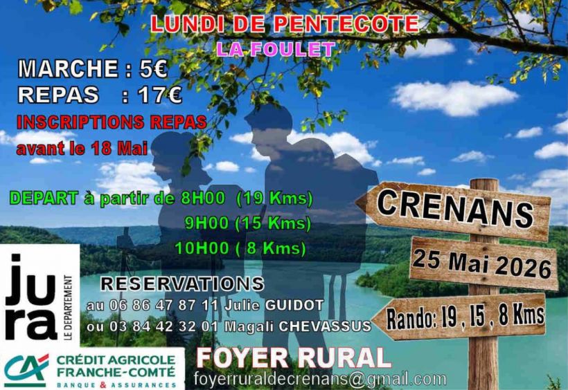 Marche du foyer rural du lundi de Pentecôte avec 3 parcours de 8, 15 et 19 km.