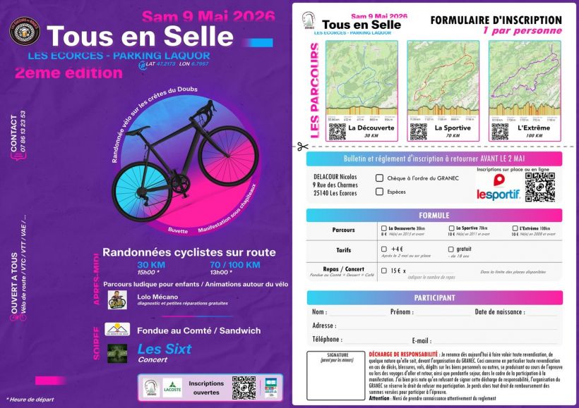 Randonnée "La sportive" 70km 1150m d+ / 10€