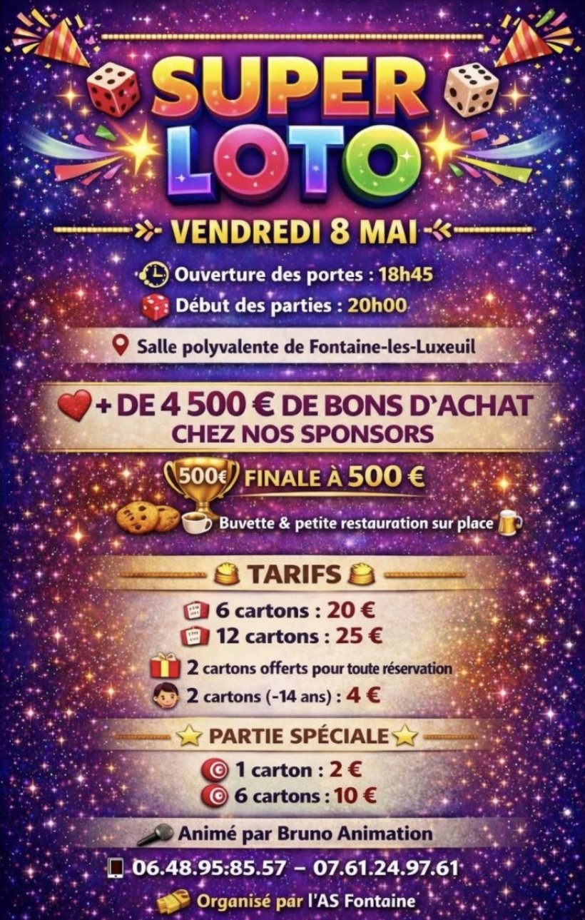 L'AS FONTAINE vous invite à une soirée 100% conviviale, animée par Bruno Animation.
