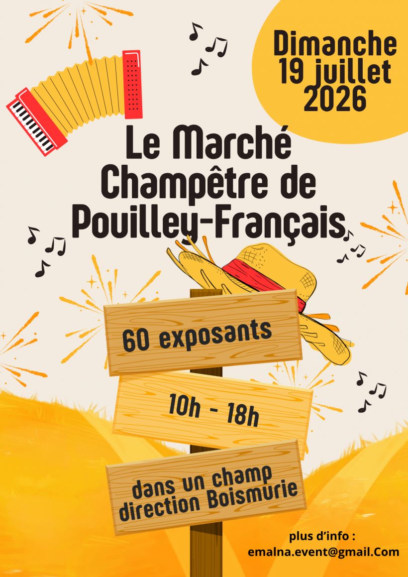 🌾🌟 Nous avons le plaisir de vous inviter au Marché Champêtre de Pouilley-Français, qui se tiendra le 19 juillet de 10h à 18h, au cœur d’un champ, direction Boismurie 🌿